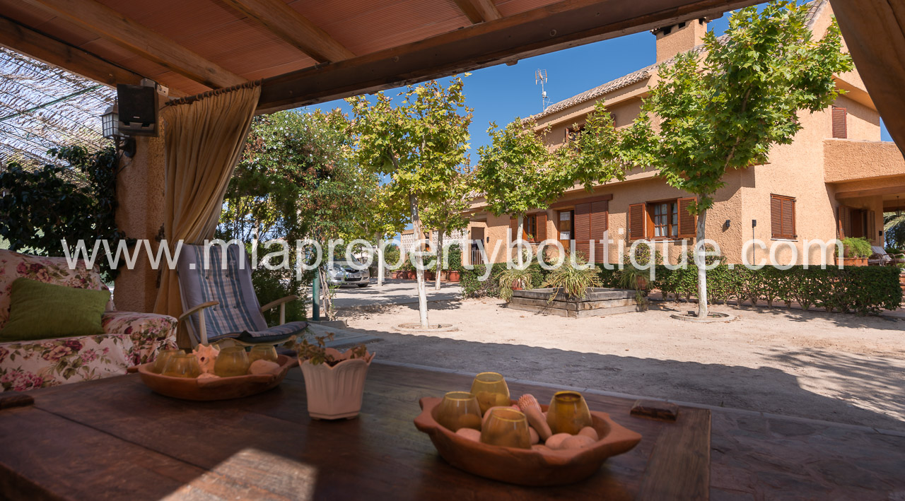 – Superficie 3.100 m/2, y 450m/2 de edificación, totalmente urbanizada y ajardinada, en la que están ubicada la vivienda, con instalaciones de piscina, frontón, cenador, barbacoa, caseta auxiliar y caseta de usos complementarios y terrazas pavimentadas.Distribuida en dos plantas, según plano de distribución: