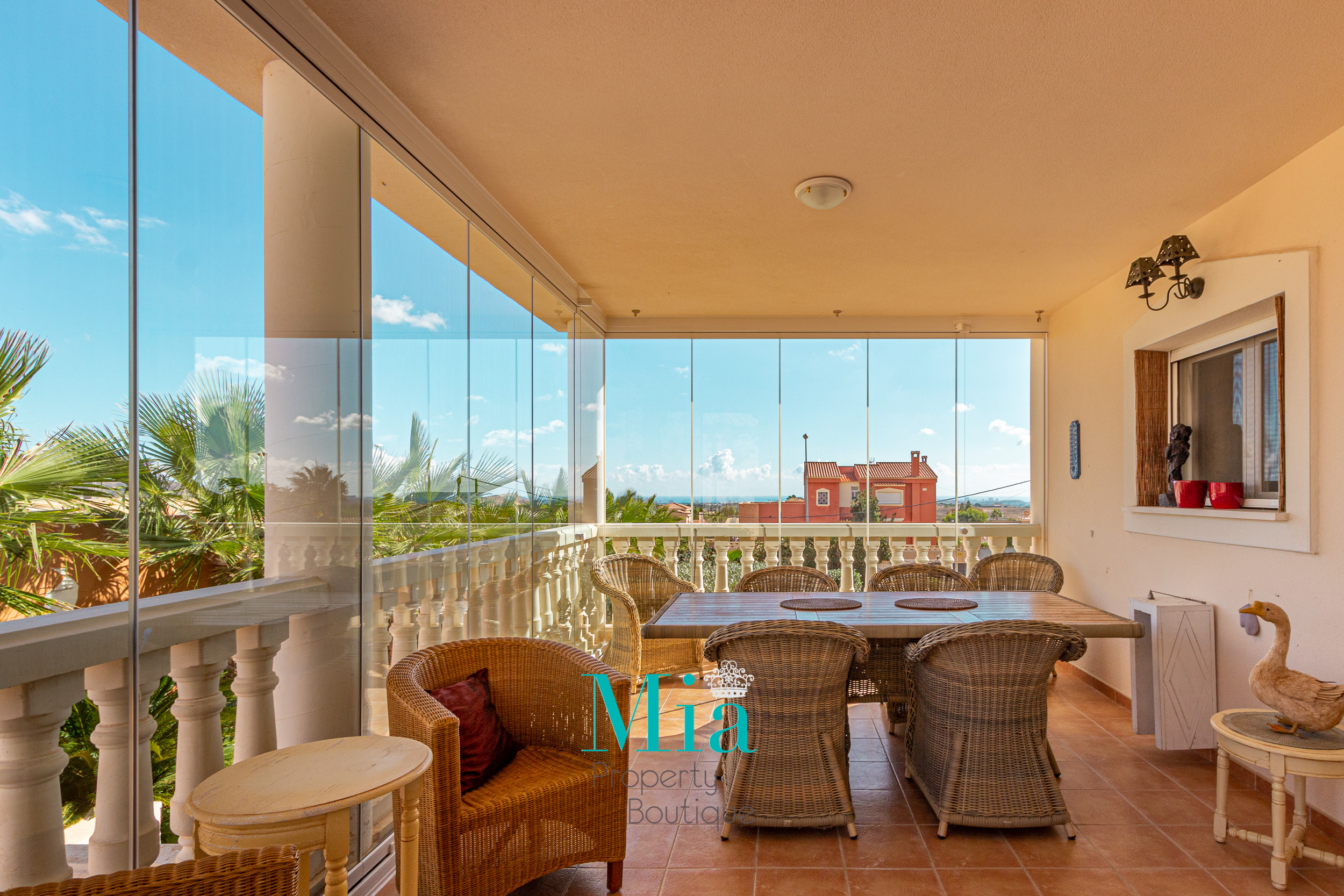 Todas las habitaciones tienen armarios empotrados, hay aire acondicionado en toda la casa. Toda la casa tiene suelos de terrazo.