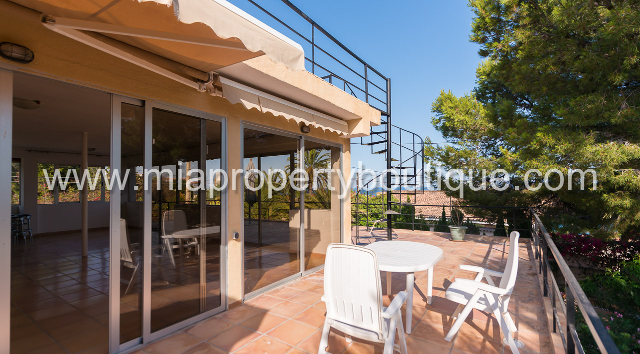 Perched up on the hills of Coveta Fuma with views to the Mediterranean sea and surrounding hills, this bright and spacious family home with private garden, swimming pool, barbeque area and roof terrace, is perfect for those seeking peace and tranquility close to the beach.