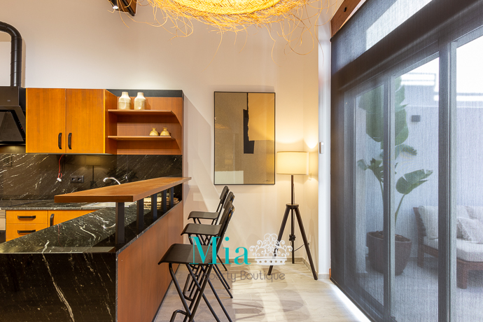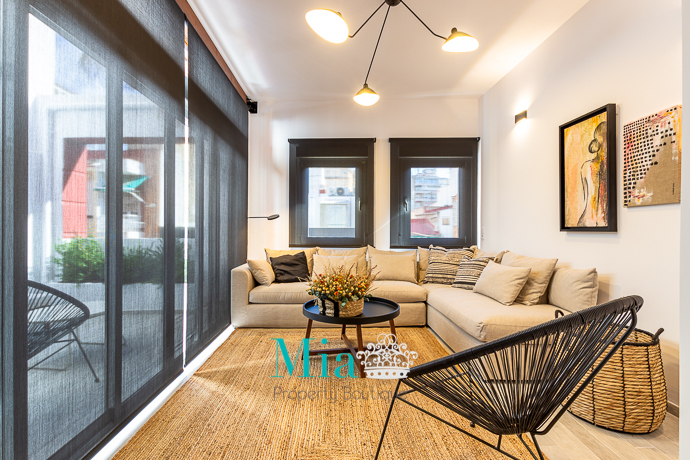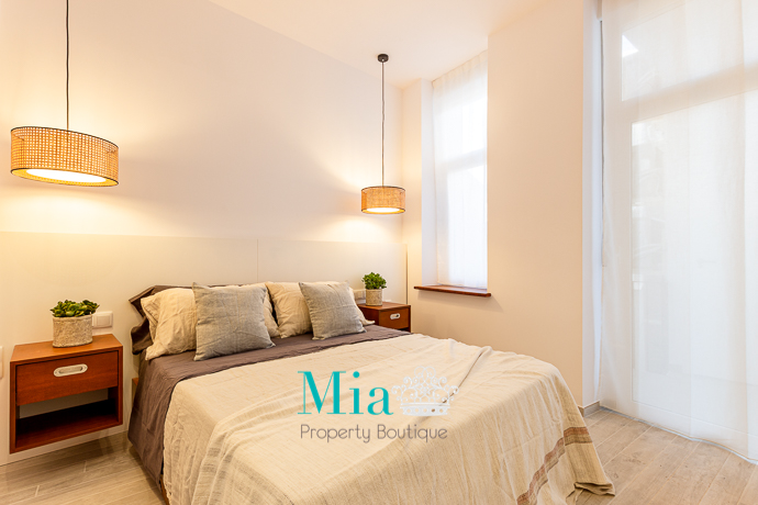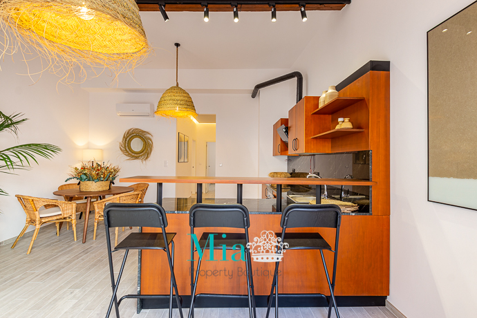 A divine apartment for long term rent, beautiful and chic, at the heart of the city. Completely renovated with a lot of taste. High ceilings of about 12 metre, private patio and balconies at the back of the building together with gracious illumination, gives this place a boutique look. With beautiful furniture style by a professional decorator with original paints on the wall!