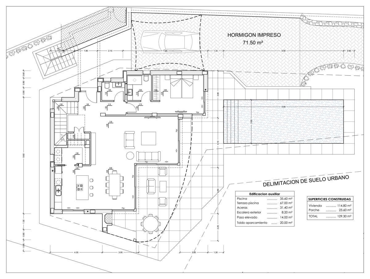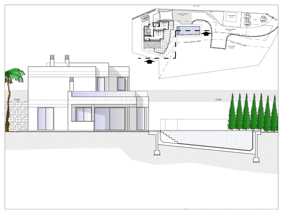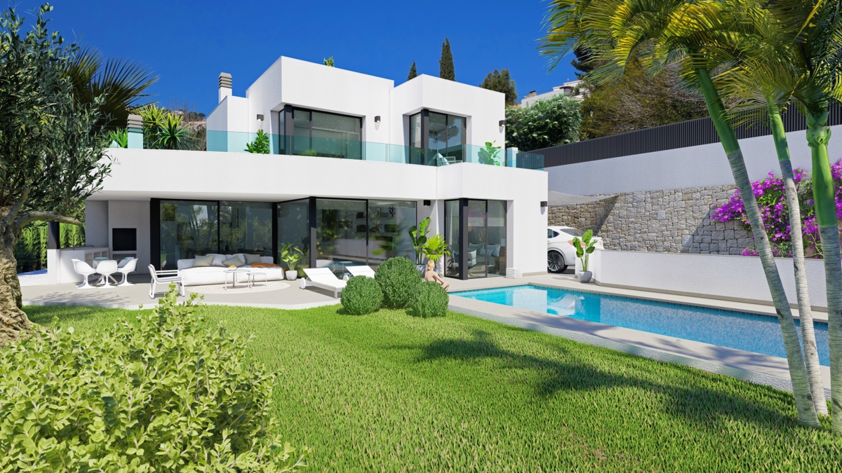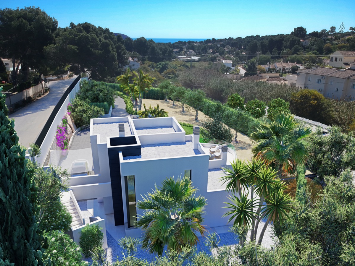 Directo del constructor, licencia: solicitada. Exclusivo proyecto de villa de lujo moderna en venta de nueva construcción en Moraira en la Costa Blanca de Alicante. La villa está situada a 2 kilómetros del centro y las playas de Moraira. La villa de diseño está en el área de La Sabatera, construida en parcela de 1.450 m2 con 509 m2 construidos, distribuidos en 2 plantas conectadas con escalera interior, 3 dormitorios con baño en suite, 1 aseo, salon comedor con cocina abierta totalmente equipada, jardín. 10-12 meses para entrega de llaves.