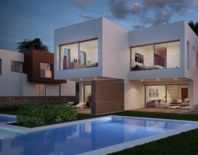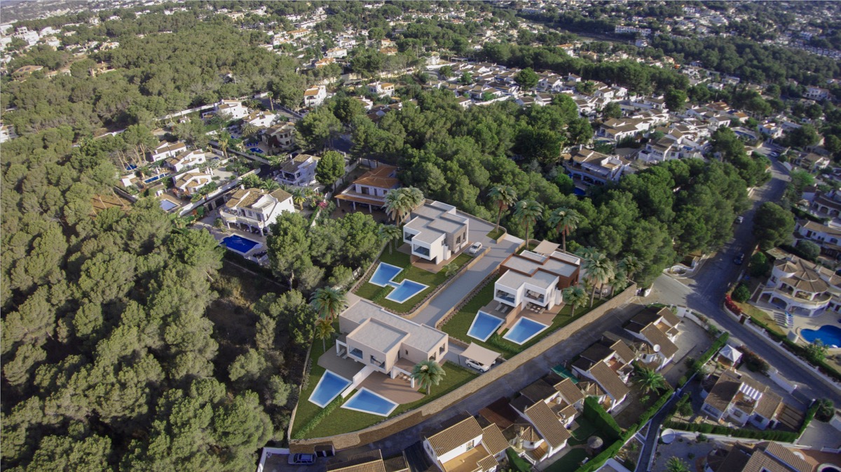 Directo del constructor, en construcción, fecha de entrega Verano de 2023, villa adosada con piscina privada de nueva construcción moderna en venta en Moraira, area de Moravit a tan solo 600m del mar y de todos los servicios, construida sobre parcela de 500 m2 dentro de complejo residencial cerrado con solo 6 propiedades, la villa distribuida en dos niveles con 161 m2 construidos, dispondrá de 3 dormitorios todos con baños en suite más un aseo de invitados, acabados de lujo, incluyendo sistema de climatización por aerotermia, con suelo radiante y aire acondicionado por conductos, cocina de abierta totalmente equipadas con electrodomésticos, muebles de baño, griferías empotradas en pared, puertas lacadas con bisagras ocultas y cierre magnético, carpintería exterior de la marca Technal, dos plazas de parking privadas con pérgola, jardín completamente terminado con riego automático.