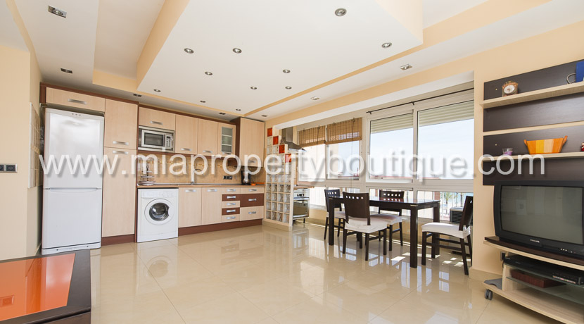 The flat is presents 3 bedrooms, one toilet, and open plan kitchen with a lounge/dinner, surrounded by the glass walls with beautiful views. There is an spacious terrace with plenty of room for a table and chairs. There is an spacious garage for your car, a bike and all your toys.