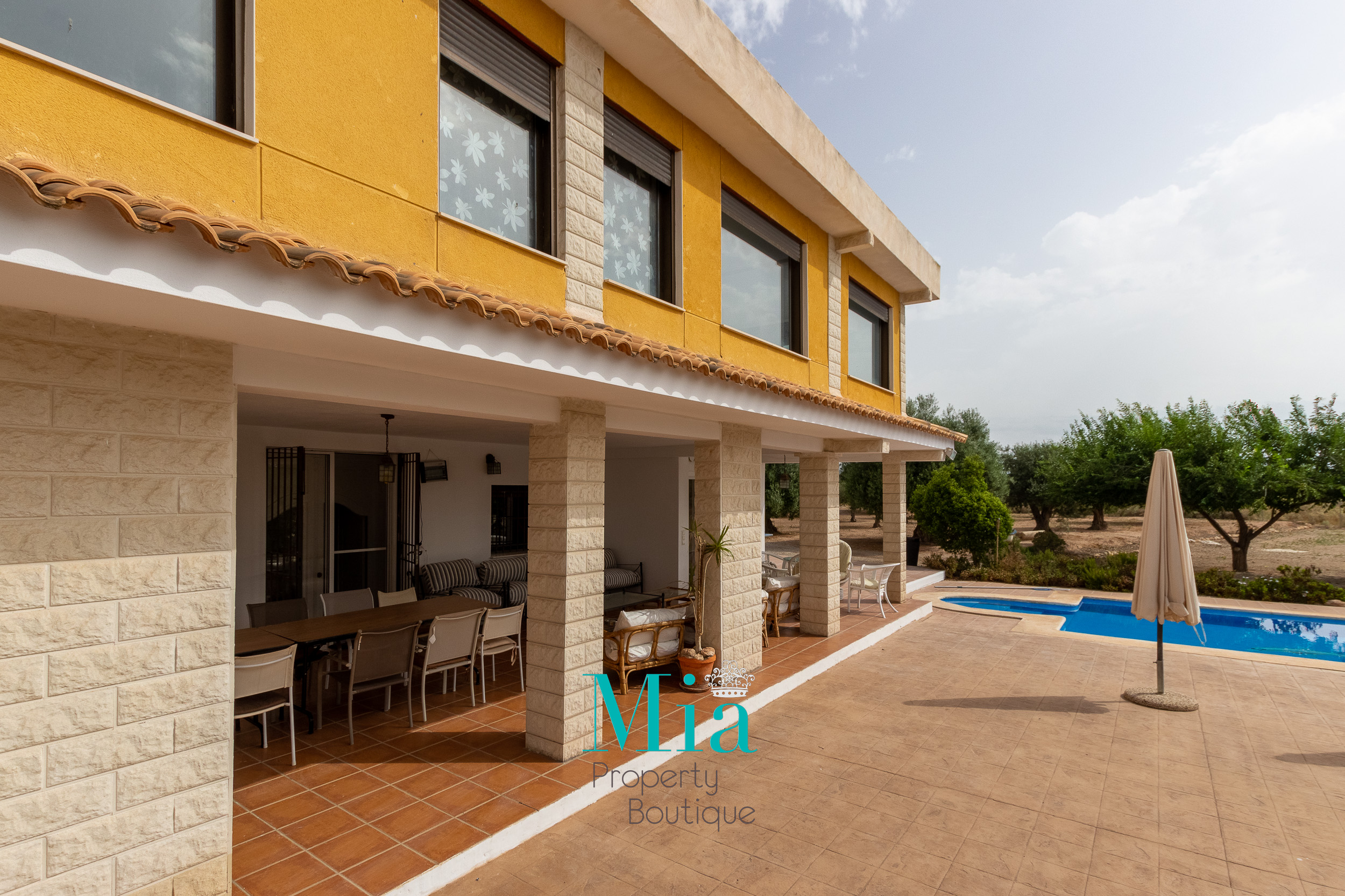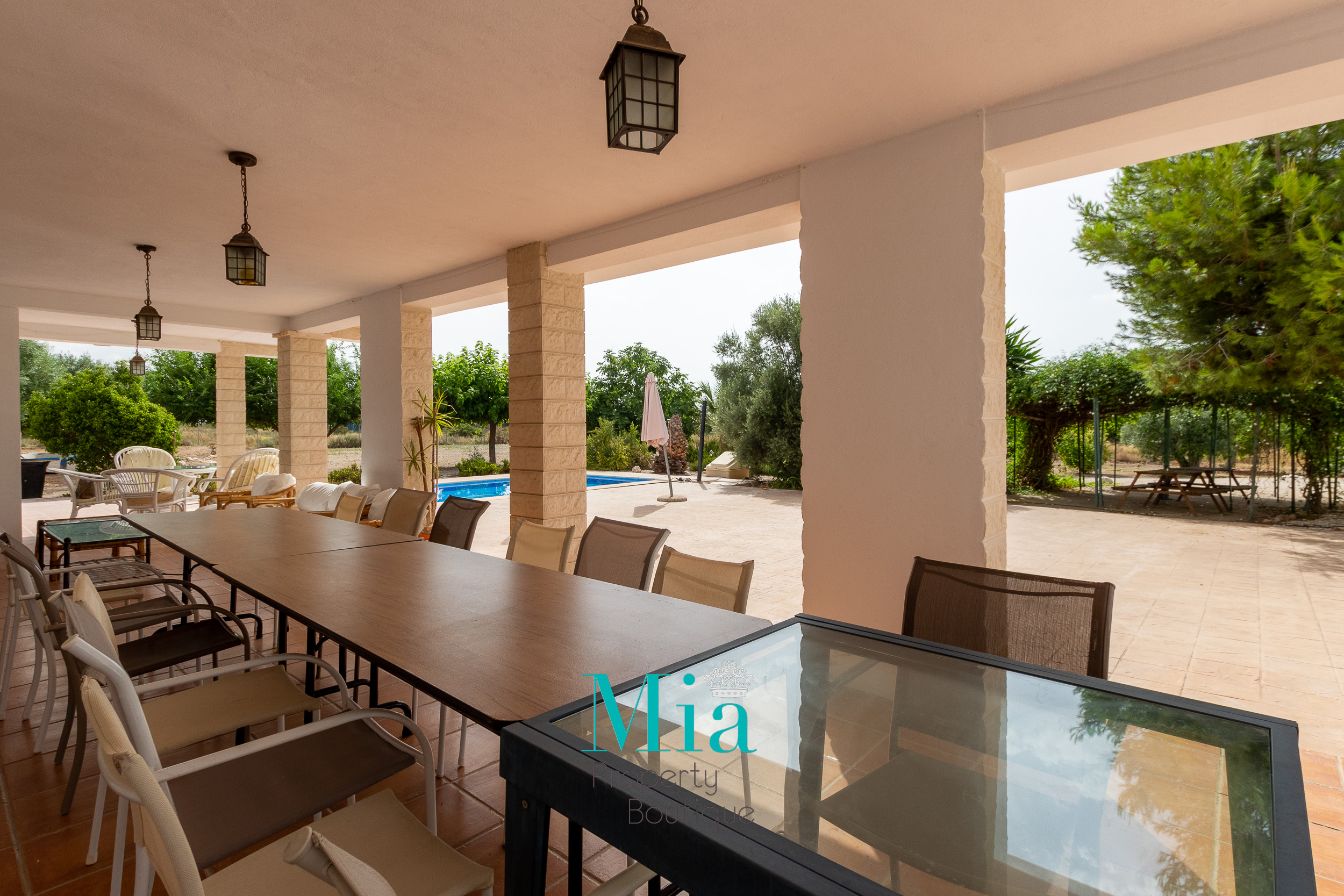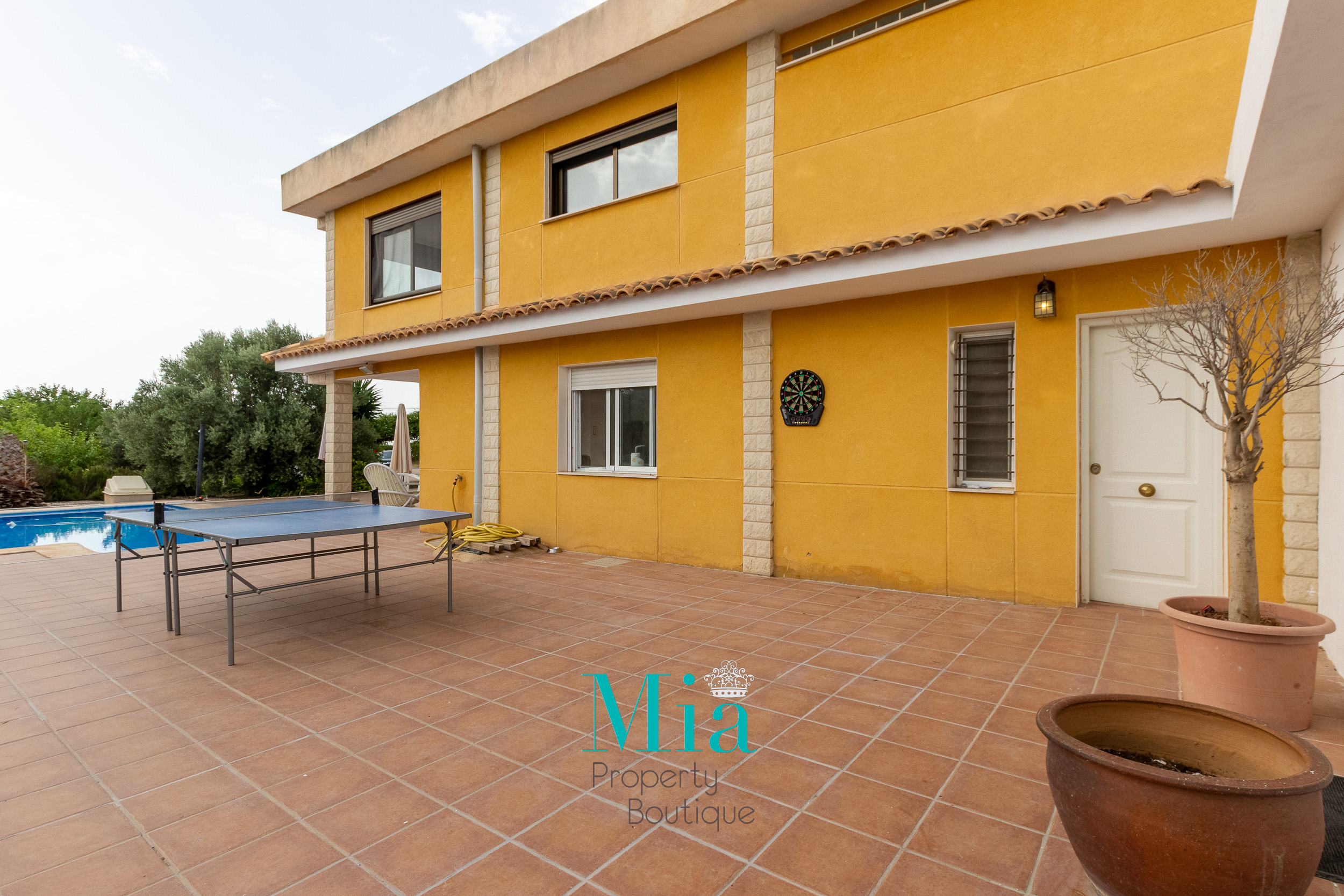 This majestic house presents 6 bedrooms, 4 bathrooms and 1 kitchen with an exterior barbecue house. On the ground floor we encounter the caves, the house has been built over them, whose current purpose is being that of 2 bedrooms. To add further the lounge with double high ceiling has access to the interior majestic patio.