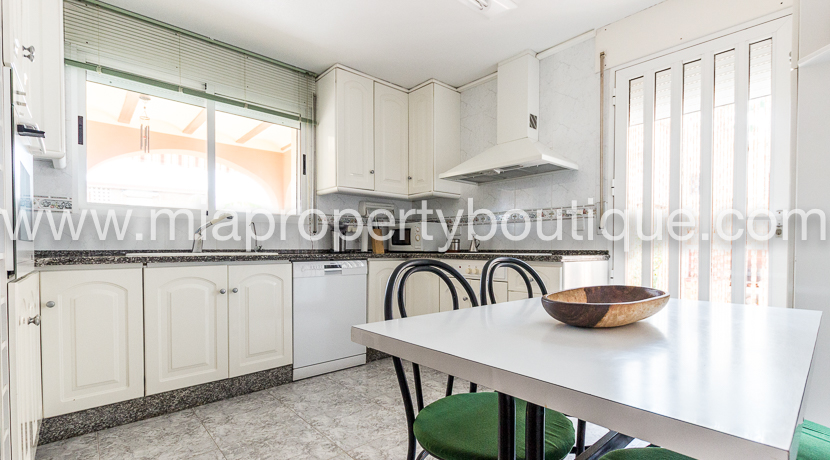Situated in LA Font, a village surrounded by fields and bike lanes, within 15 minutes walk from Muchavista Beach and el Liceo Franch School. Close to supermarkets, bus stops, the European School is only 10 minutes away driving and the British school just 20 minutes!. Alicante city is also 15 minutes drive and the touristic town of Campello only 5!