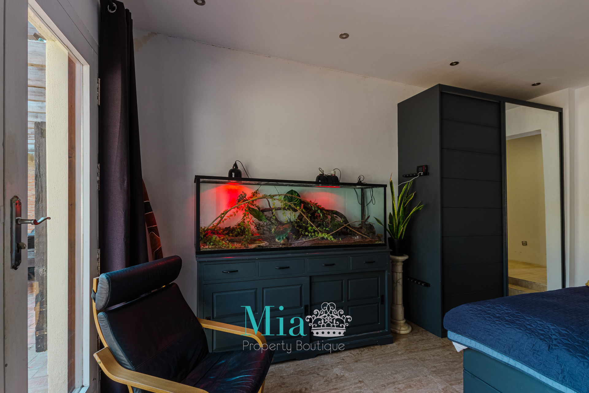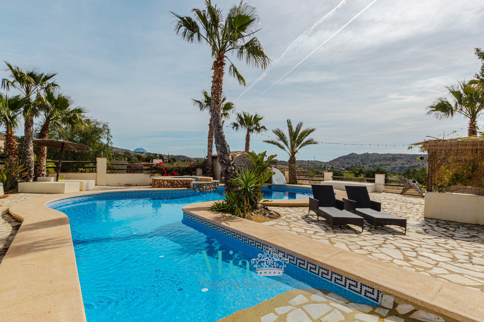 Surround yourself with the lifestyle that you love by renting this stunning house with incredible countryside views. This Sanctuary of a house offers elegance with comfort with fantastic amenities, where you can easily escape and lose yourself in the captivating nature or merge yourself in the fabulous swimming pool with a water slide and jacuzzi, , with lush trees around, 2 independent studios outside the house, have fun with your friends and explore the city and the mediterranean coast! The ultimate escapism, where serenity meets adventure, near the city and the beach, within 2 minutes drive to Aiguest Village, with scenery roads, known as the Toscana of Alicante