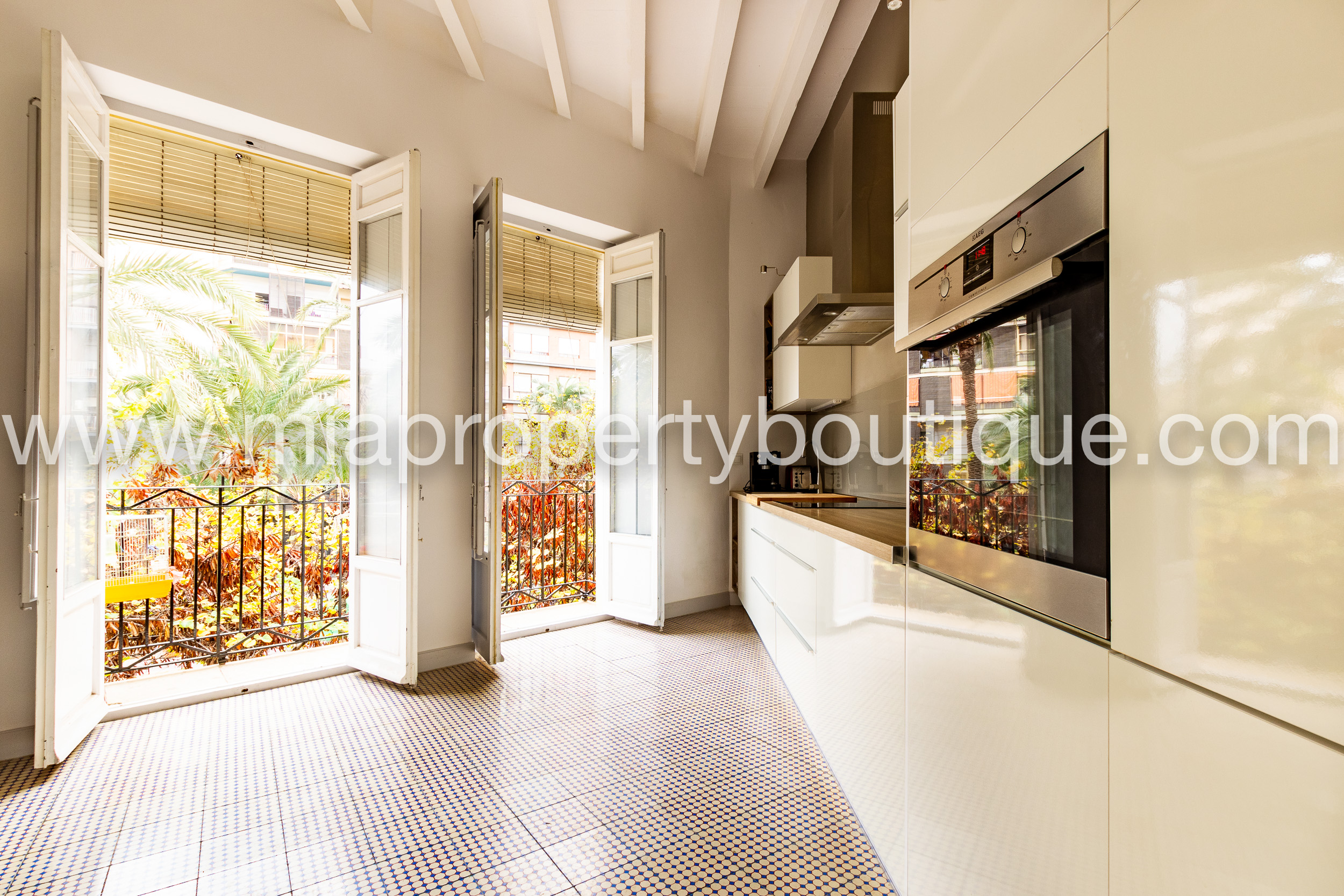 If you want to live and enjoy the Spanish way of life, then what better way to do it than living in a ‘Colonial Vintage” apartment in the city center? This wonderful apartment has recently been fully renovate and instead of replacing the old, the owner has actually embraced all the antique aspects of the floor and enhanced them. This home enjoys the old high ceiling structure with wooden beams and large louvre windows that look out over a little park. Mixed with original and modern features, makes the apartment a chic place to be in town!