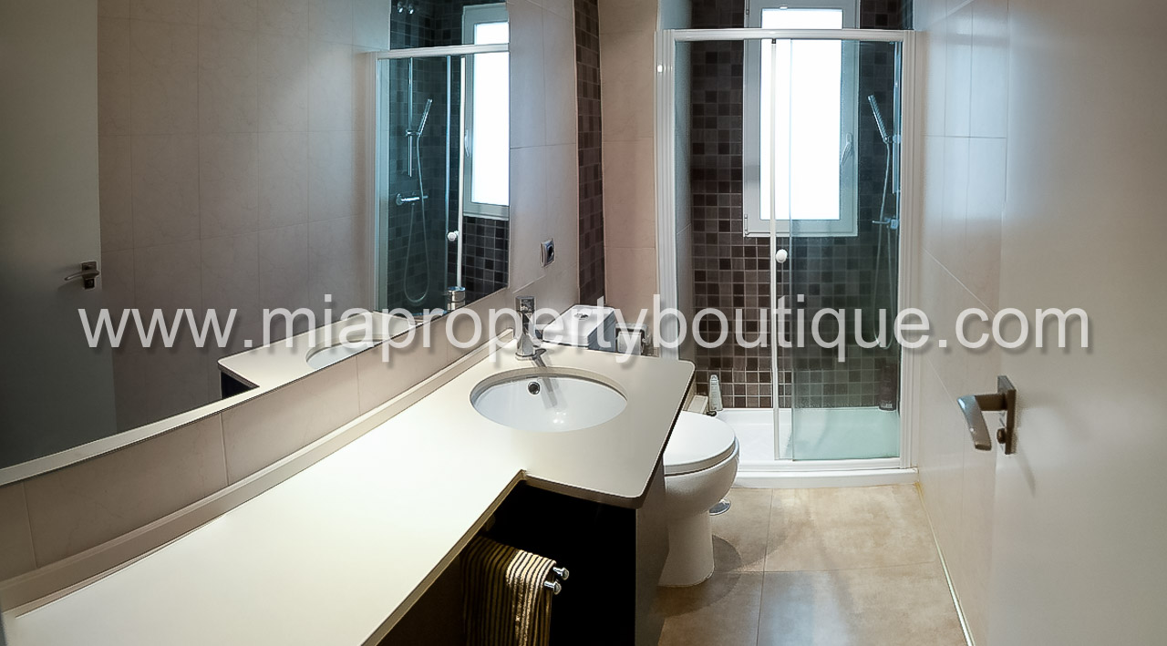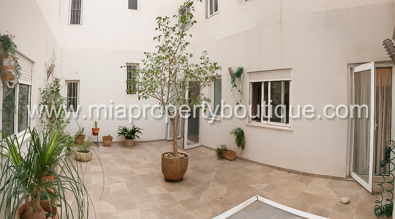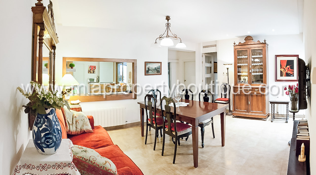 Originally built in 1990 and totally refurbished in 2009 the apartment offers 8 double bedrooms and 3 bathrooms. With a large terrace and two interiors patios providing plenty of natural light, you feel like you are in your own private villa with its country-style arches giving to the kitchen and barbecue. The apartment has it all, high ceilings, large fitted wardrobes, master bedroom with dressing room and bathroom, sleak walls, large gallery, heating with radiators of natural gas.