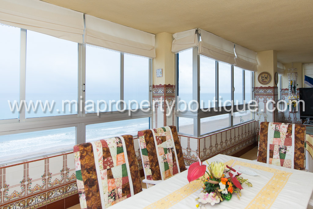 Den rymliga lägenheten har tre sovrum och en studio, sovrummet med eget badrum och garderober, köket med direkt tillgång till terrassen och grillplatsen, perfekt för ”paella al fresco” på sommaren! Vardagsrum och matplats ansluter till den breda terrassen med direkt panoramautsikt över stranden och resten av Costa Blanca kusten!